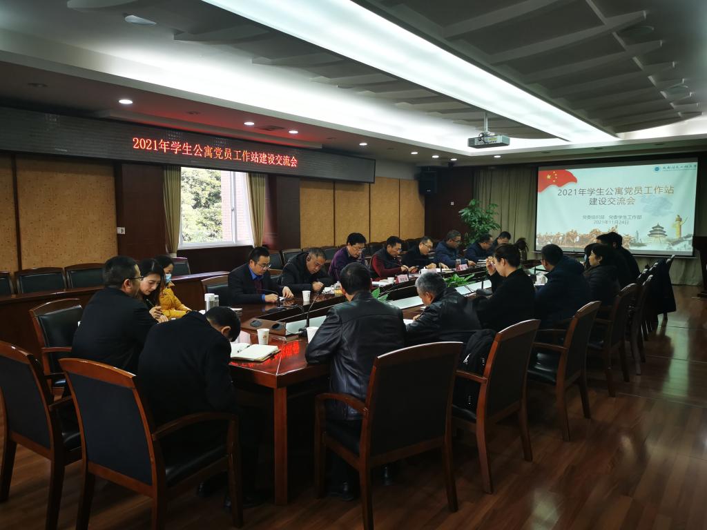 【本网讯】11月24日上午,学校在行政楼第七会议室召开学生公寓党员工作站建设交流会。学校党委副书记马洪江,学校党委常委、党委组织部部长熊建,学校学生公寓党员工作站管理办公室成员,2021年驻站的学院党委负责同志、指导老师、学生代表参加了会议。会议由党委学工部部长龚晓林主持。