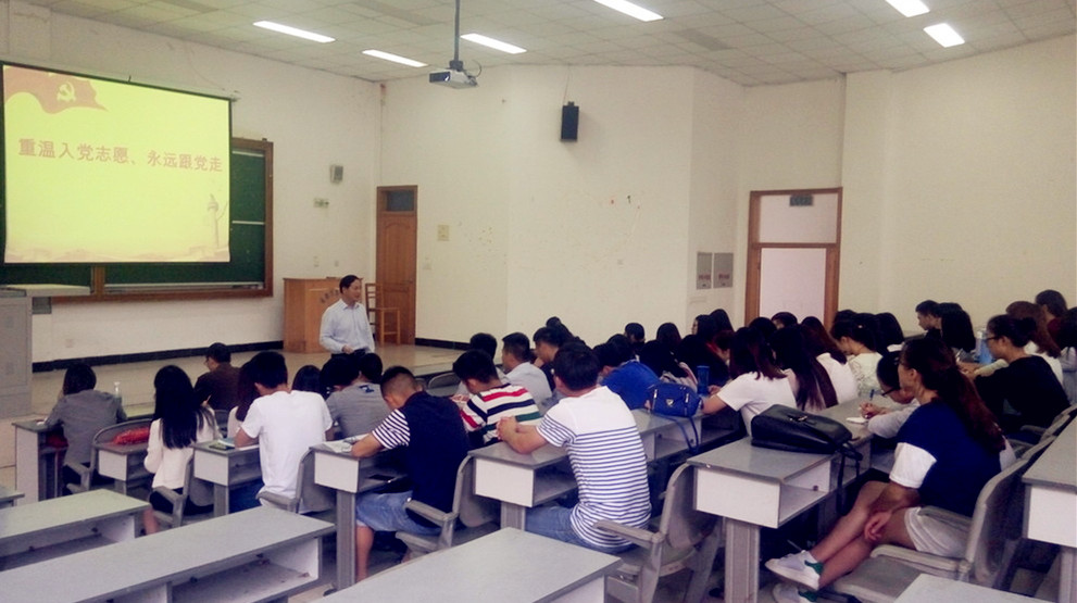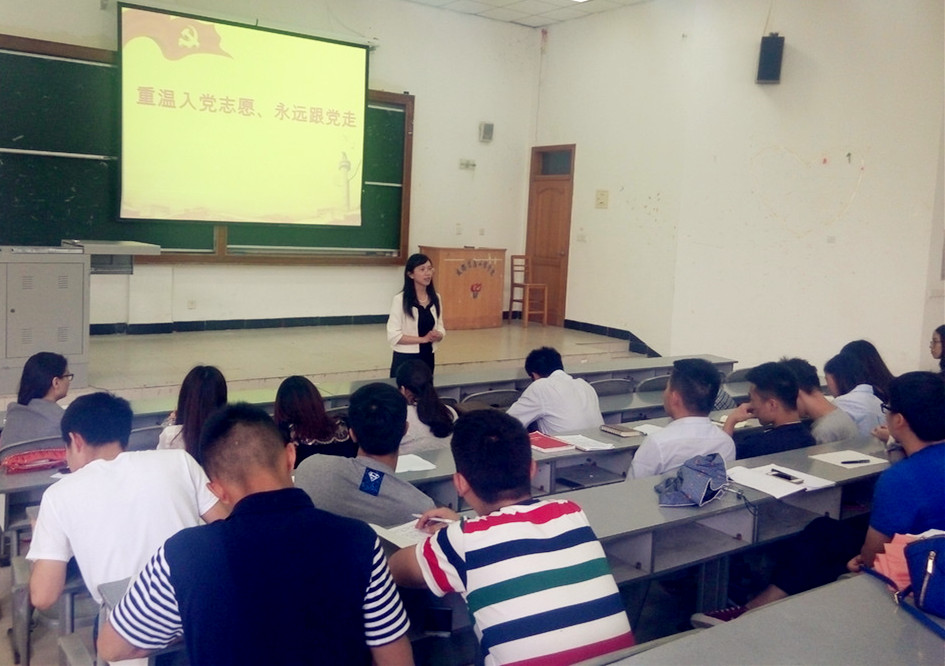 5月4日,管理学院在L4101教室开展“重温入党志愿、永远跟党走”主题党日活动,全面启动“‘两学一做”学习教育。学院党总支书记王子华、院长黄萍带头讲述入党初衷、谈人生理想与工作追求。学院教师党员及全体学生党员参加了此次活动。