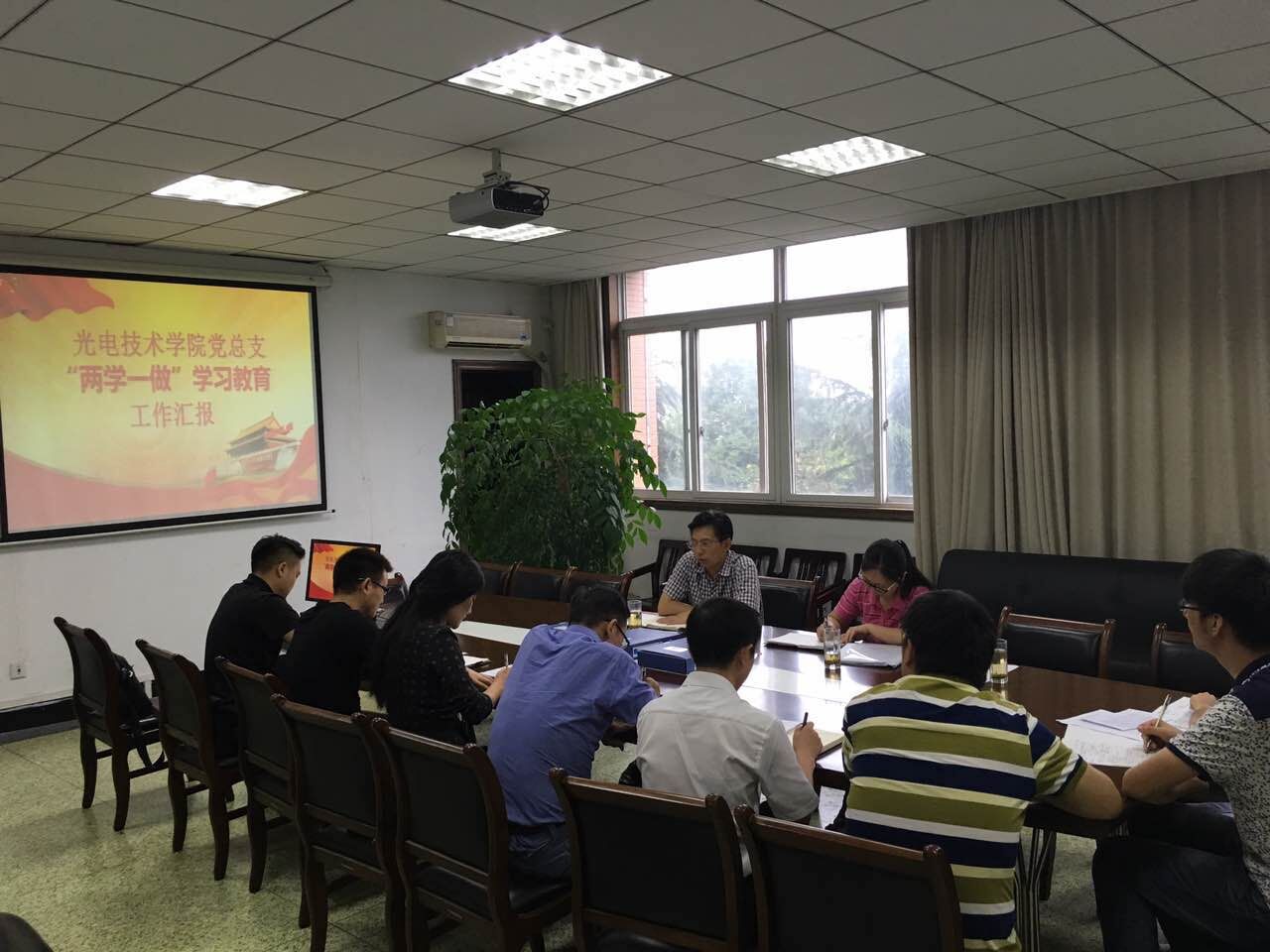 7月13日下午,学校“两学一做”学习教育第五督导组到光电技术学院督导检查“两学一做”学习教育工作开展情况。督导组由学校党委常委、校长助理、组织部部长肖月强带队,光电技术学院党总支全体成员,副院长杨定宇(列席)、教工党支部、学生党支部书记及成员参加了此活动。汇报会由光电技术学院党总支书记王嵩主持。